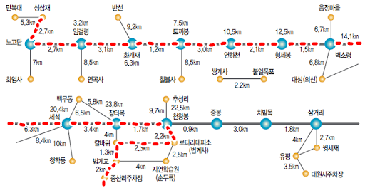 오르며 지나치고 내려오며 쉬는 곳이다. 그런 이 마을을 지날때마다 가슴 아픔을 느낀다. 야속하게도 젊은 나이에 훌쩍 생을 접어버린 후배의 고향이어서다. 그가 나에게 깍듯하였기에 나는 마음의 빚을 졌었다.