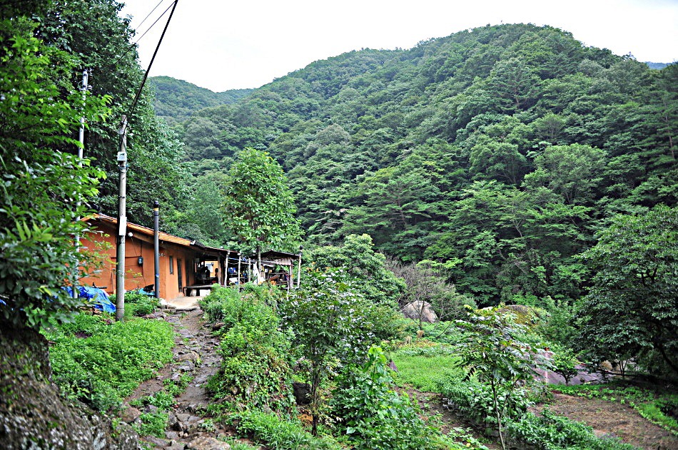 대성골 입구 민박집은 지날때마다 쉬었다. 하산길은 도토리묵에 동동주로 허기진 배를 채울 수있는 쉼터이다. 웅덩이에서 신나게 물장구치는 아이들을 보면서 마시는 동동주 맛에 세상은 별천지가 되어 버린다.
