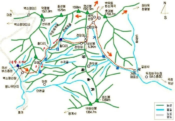 여름 산행은 계곡물이 흘러야 제격이다. 이 의신마을을 거쳐가는 곳은 맑고 차가운 계곡물이 있어서 좋다.
