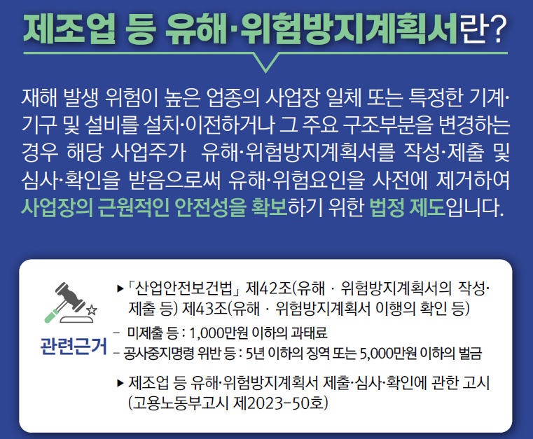 2 산업재해의 근본적인 예방 방지위해 제조설비를 설치하기전 설계 자료, 건축도면, 설비도면, 안전장치등을