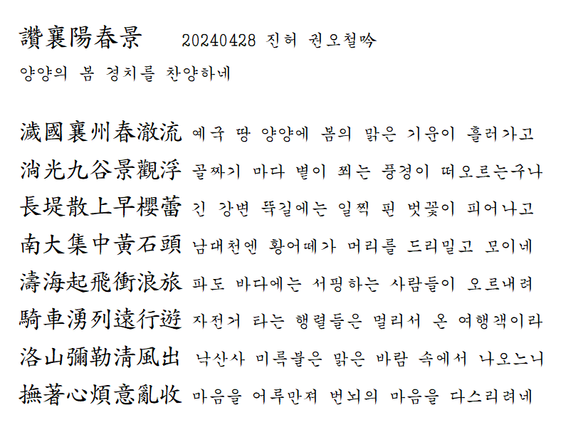 讚襄陽春景 20240428 진허 권오철吟