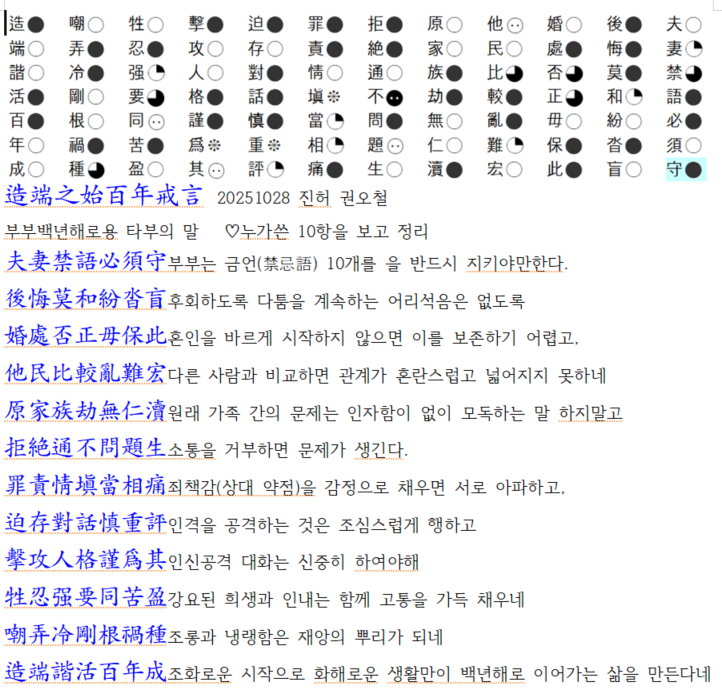 부부백년해로용 타부의 말 ♡누가쓴 10항을 보고 정리