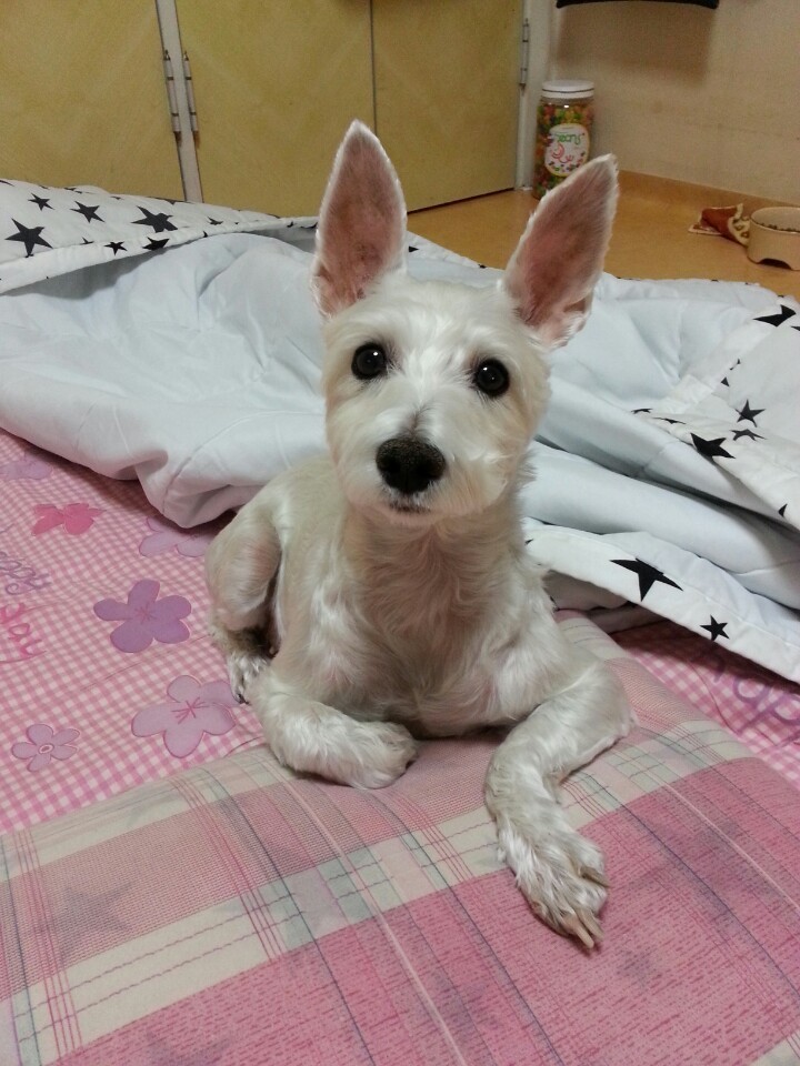 특징은 암컷이고, 귀가 크고 쫑긋합니다.