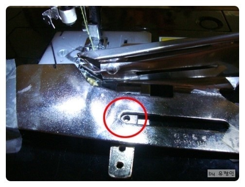 사진을 보시면 보통원단용보다 두꺼운 원단용이 바이어스 들어가는 부분이 좀 더 넓은 것을 알 수가 있어요.
