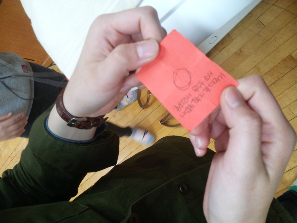 제비뽑기 순서대로 줄서서 제비뽑기 한 후 A팀과 B팀으로 나눈 후에 팀 대표들이 한명씩 나와서 어느 팀 이 먼저 할지 나와서 가위 바위 보를 한 뒤 이긴 팀이 순서를 정한 뒤 A팀이 먼저 보물을 숨긴다. 그런 다음 B팀이 A팀이 숨겨놓은 보물을 찾는다. 제한시간은 3분이며 제한 시간 안에 꽝 이 적힌 쪽지가 아닌 진짜 보물이 적힌 쪽지를 더 많이 찾아오는 팀이 결승 진출 (쪽지에 적힌 미션을 수행 하면서 와야 한다.) 이때 진짜 보물은 5개이고 꽝은 10개이다. 이 방법으로 똑같이 B팀과 A팀 바꿔서 게임을 진행하여 A팀 B팀 기록을 확인하여 이긴 팀 에게 상품을 제공 한다.