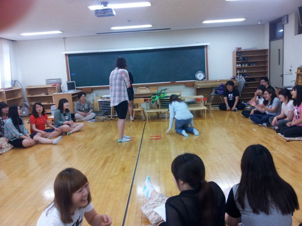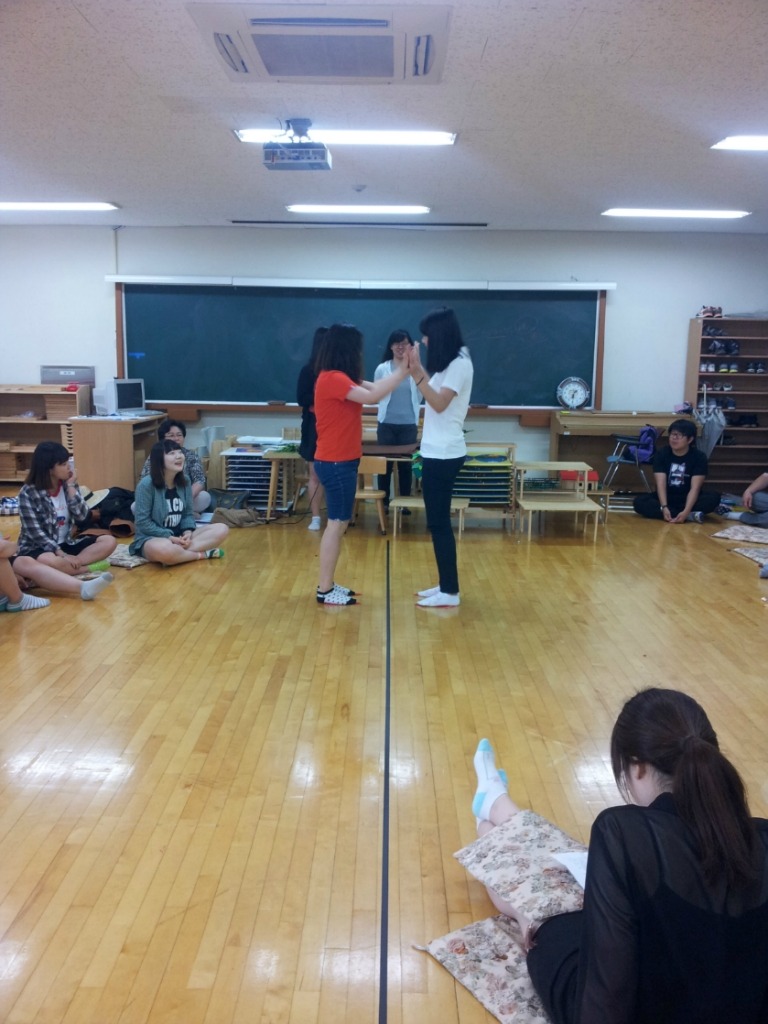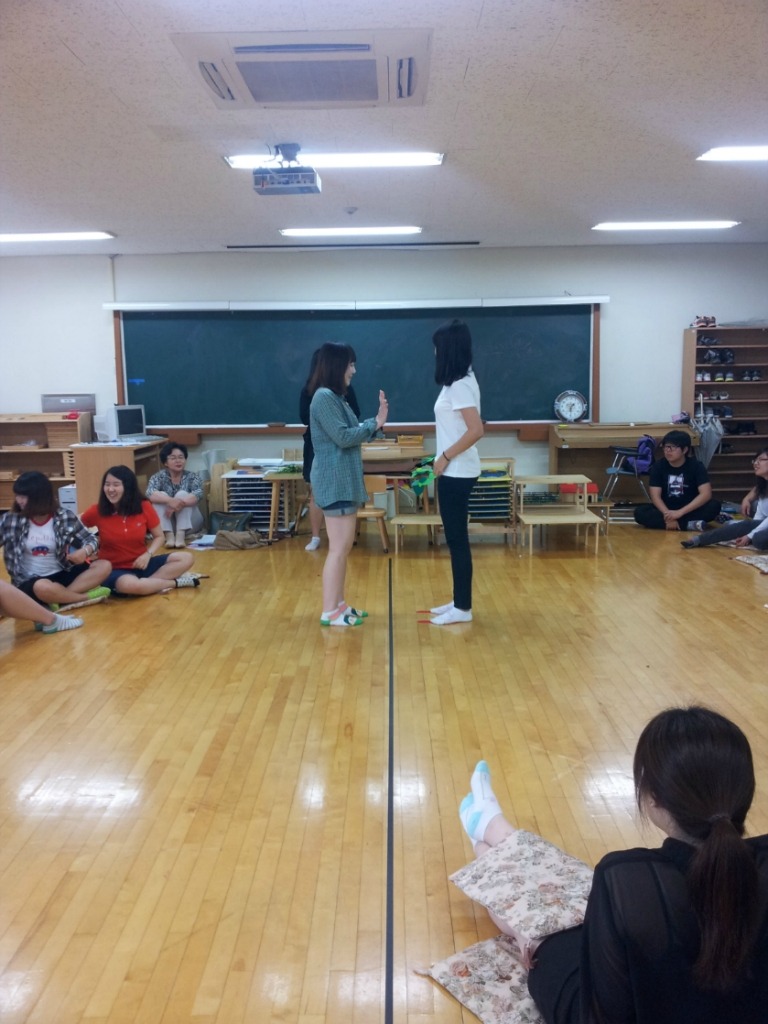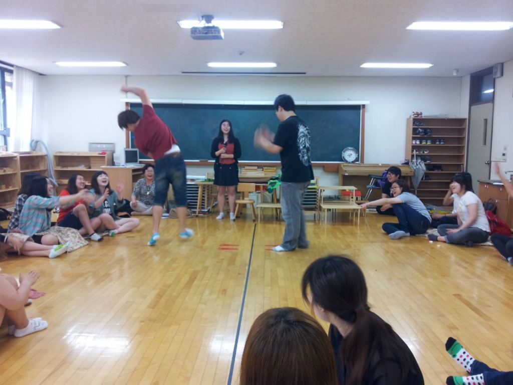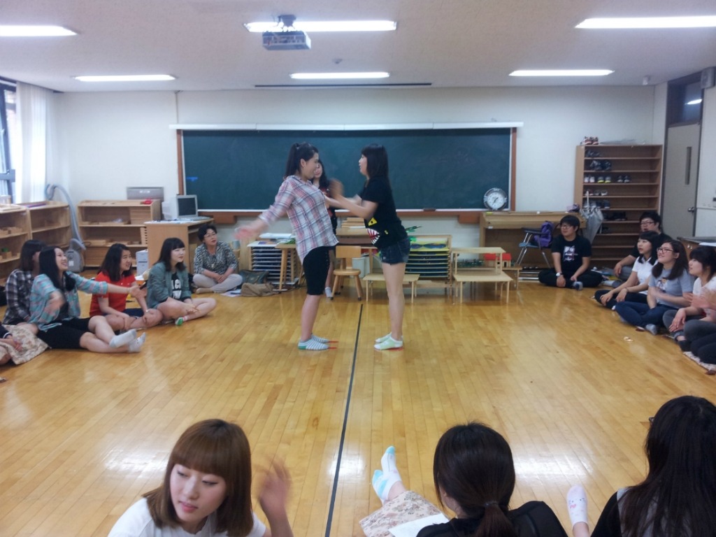 2.한명씩 나와서 차례로 손바닥 밀치기를 한다.