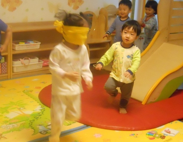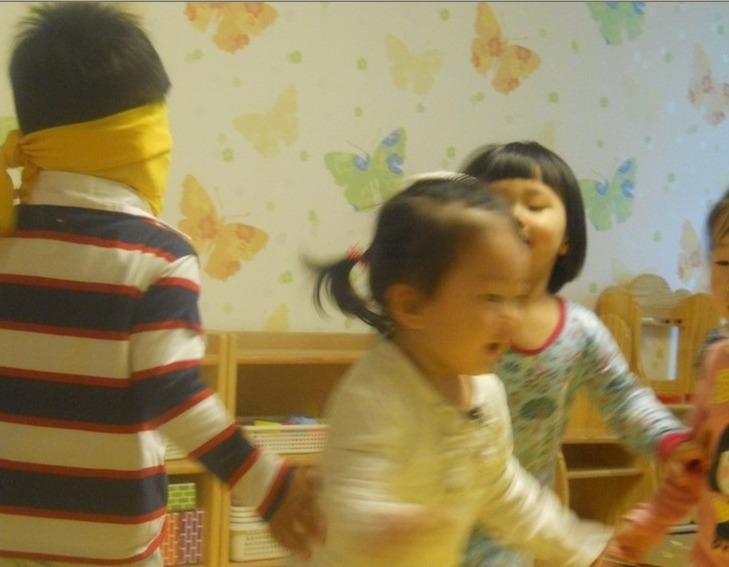 눈을 가리지 않은 사람은 제자리에서 움직이지 않았으면 좋았다