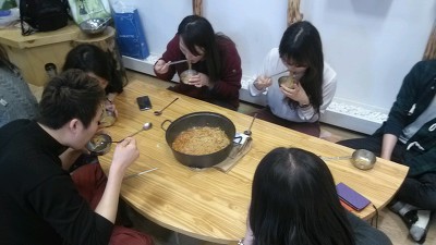 불청객 한명과 함께 나눠먹는 라면시간