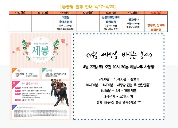 < 4월 즐거운청년커뮤니티ⓔ끌림 '세상을바꾸는봉사' >