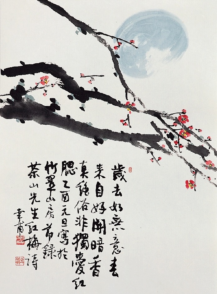 牆角數枝梅(장각수지매) / 凌寒獨自開(능한독자개) / 遙知不是雪(요지부시설) / 爲有暗香來(위유암향래) 담 모퉁이의 매화 몇 가지 / 추위를 이기고 홀로 피었네 / 멀리서도 눈이 아님을 알겠나니 / 은은한 향기가 풍겨오누나.