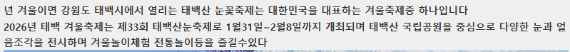 태백산눈꽃축제,하늘전망대,석탄박물관,낙동강발원지 황지연못,황지시장여행여행 | |