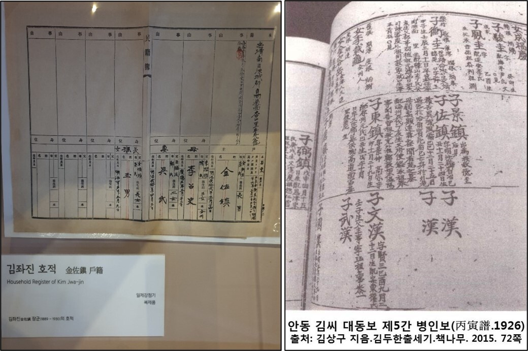 ④김좌진은 두 아들의 신변의 위험을 우려하여 이름자에 항렬을 쓰지 않았을 것으로 판단됨.