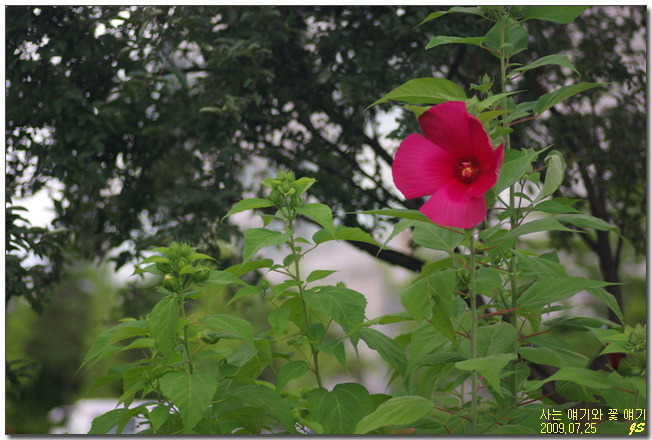 부용화의 두번 째 놈은 꽃이 제 모자해도 될 정도로 커더군요.
