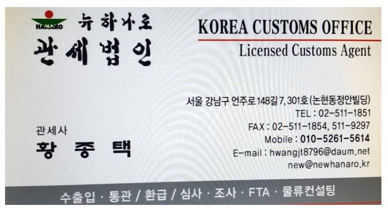서울세관 근처에 "뉴하나로관세법인"에 관세사로서 일을 하게 되었습니다