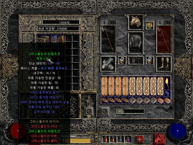 월드의 캐듀시어스(40공속에 샤에룬4개 작된 것), 룬워드 에테죽음의숨결 버서크액스로 전사형 드루이드 들의 일반적 무기입니다.