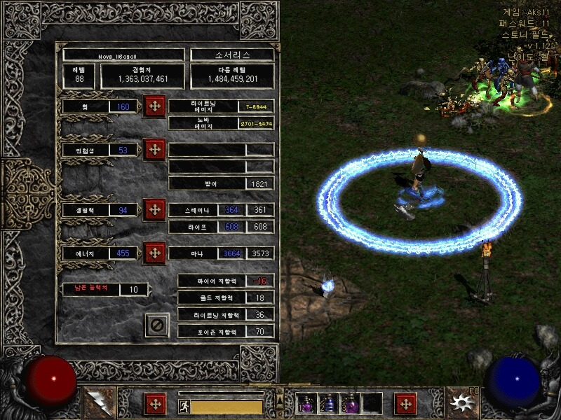 하지만 두가지의 장점을 하나로 모으고 엽기적인 올마나로 간 결과 에쉴노바란 파괴적인 케릭터가 나왔습니다. 엽기적이고 아이템도 이것저것 필요한 것이 많지만 한번 제대로 키우신다면 올마나 케릭터로도 육성이 가능하구나 느끼실 수 있습니다.