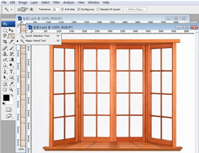 2. 창문에 있는 이미지를 선택 - (옵션 바의 "Add to selection" 선택 후)
