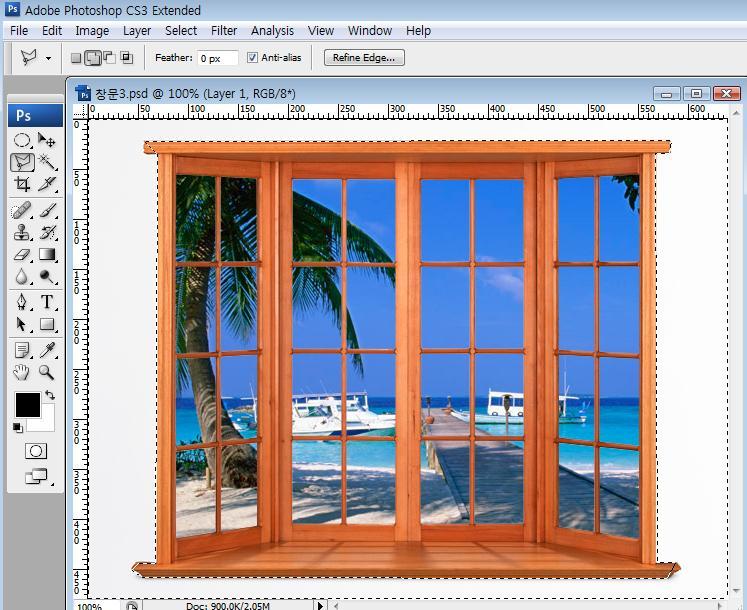 5. "4번"의 이미지를 다각선택툴(Polygonal Lasso Tool)로 창문 바깥쪽을 선택 후