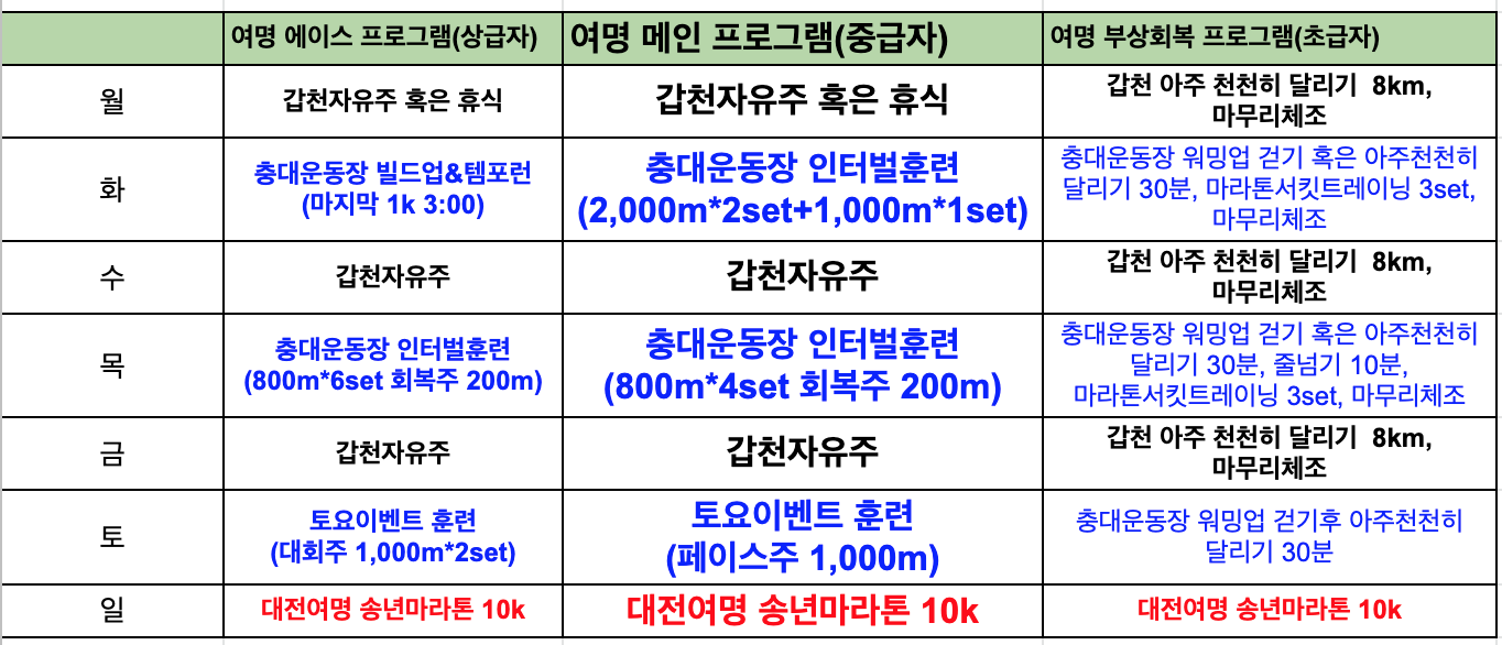 오늘이 제가 올리는 마지막 훈련일정 입니다.