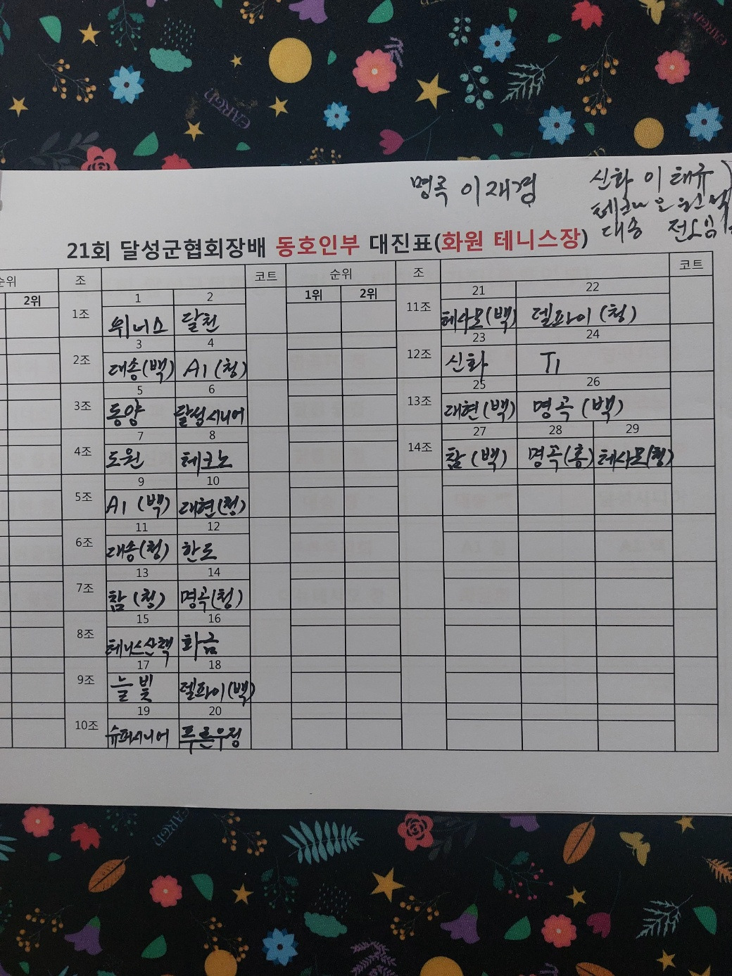 21회 달성군협회장배 테니스대회 동호인부 대진표 작성자수수|작성시간24.11.14|조회수247 목록 댓글 0 글자크기 작게가 글자크기 크게가 동호인부 대진표입니다....에이스부는 당일 코트에서 추첨합니다 다음검색 현재 게시글 추가 기능 열기 북마크 공유하기 신고 센터로 신고 댓글 댓글 0 댓글쓰기 답글쓰기 댓글 리스트