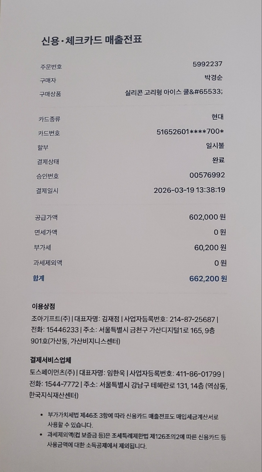 | 3/19 | 3/19 | 26주년개설기념선물-실리콘 고리형 아이스 쿨타올 100개 제작 | 662,200 | |||