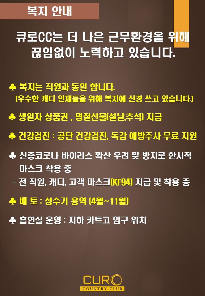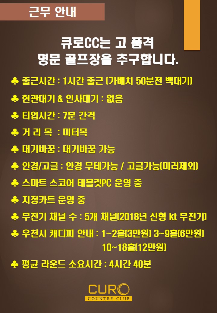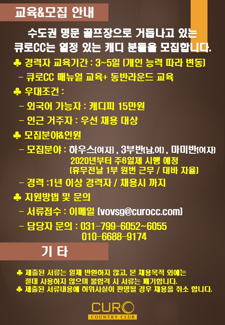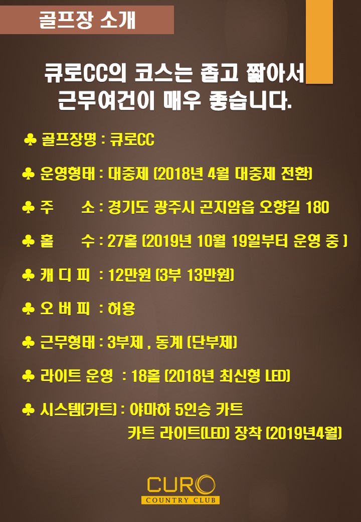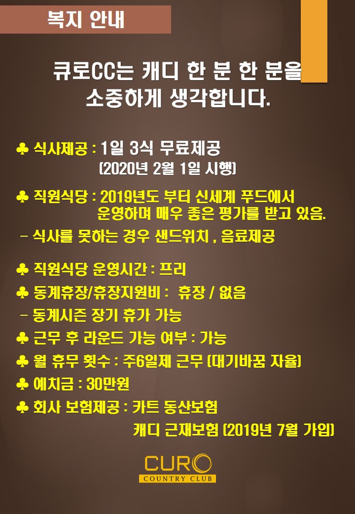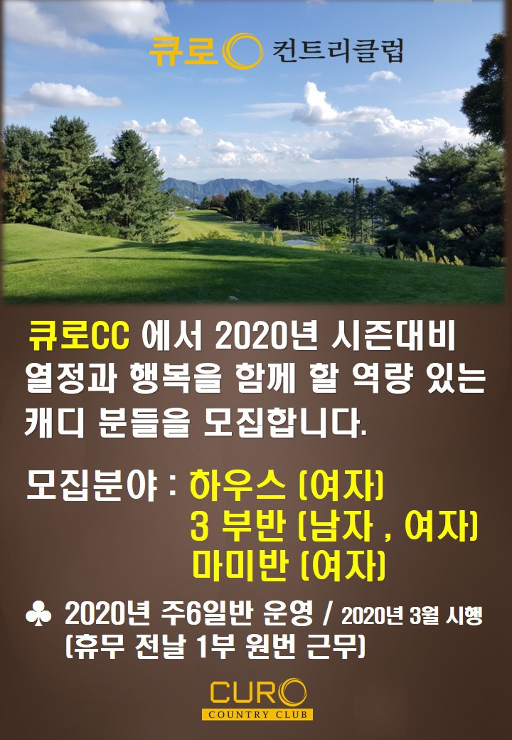 큐로cc에서 2020년 열정과 행복을 함께 할 역량 있는 캐디 분들을 모집합니다. 작성자큐로cc|작성시간20.02.03|조회수693 목록 댓글 4 글자크기 작게가 글자크기 크게가 다음검색 현재 게시글 추가 기능 열기 북마크 공유하기 신고 센터로 신고 댓글 댓글 4 댓글쓰기 답글쓰기 댓글 리스트 작성자김민숙 | 작성시간 20.02.12 현장 지급인가요???통장 지급인가요??? 답댓글 작성자큐로cc. | 작성시간 20.02.17 큐로cc 캐디피는 현장 지급입니다 작성자라니예용 | 작성시간 20.02.25 3부제도해야한다던데..ㅠㅠ 작성자김프로 | 작성시간 20.03.09 54전투반있나요? 댓글 전체보기