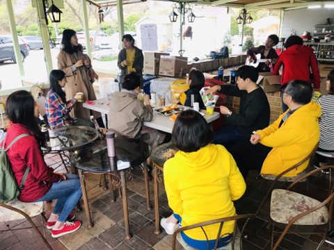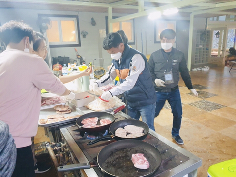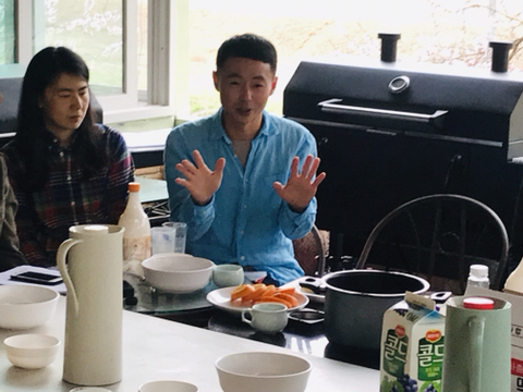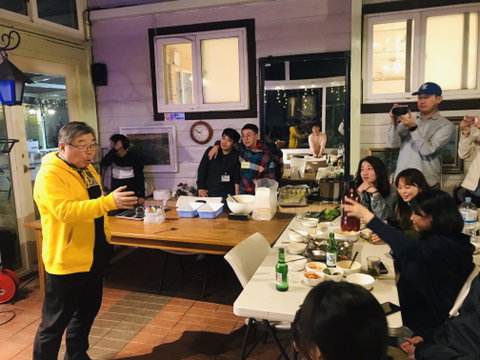 방으로 자리를 옮겨 한승모 선생님이 아카펠라를 한다. 모두와 함께 노래를 맞춘다. 승모는 어디든, 누구든 모두를 하나로 모으는 탁월함이 있다. 나와 토론 선생 몇은 밖에서 고기를 굽고 먹을 찬을 만든다고 바빴다. 목살 10킬로, 막창 4킬로를 미리 초벌한다. 아카펠라를 마칠 때 숯불에서 구워서 나눈다. 다 먹었다.