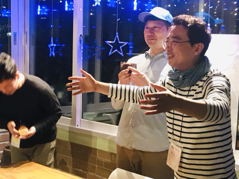 생일 축하를 보냈다. 주한경 선생님과 김영록 선생님이 같은 날 생일이다. 함께 노래하며 축하했다. 생일 축하로 뒤풀이는 후끈 달아올랐다. 나는 뒤풀이 담당이기도 했다. 노래를 많이 불렀다. 여러 선생님들 노래와 함께 서울경기글쓰기교육연구회 이주영 선생님께서도 노래해주셨다. <산중호걸>과 <퐁당퐁당>으로 율동 곁들인 선생님 율동은 귀엽고 웃음을 자아내면서도 감동이다. 어디서든 나를 드러낼 수 있는 멋짐에 푹 빠졌다. 변채우 선생님의 개인 연극, 별의 별의 아카펠라로 축하 뒤풀이를 마쳤다. 초대 받은 자작나무 탁동철, 박성진 선생님 두 분이 노래로 대답한다. 황시백 선생님을 주제로 세 곡 불러주셨다.