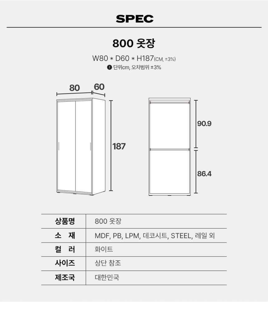 2025년 12월부터 루스 800 여닫이 옷장과 필미 800 슬라이딩옷장의 스펙이 변경된 것 아시나요?