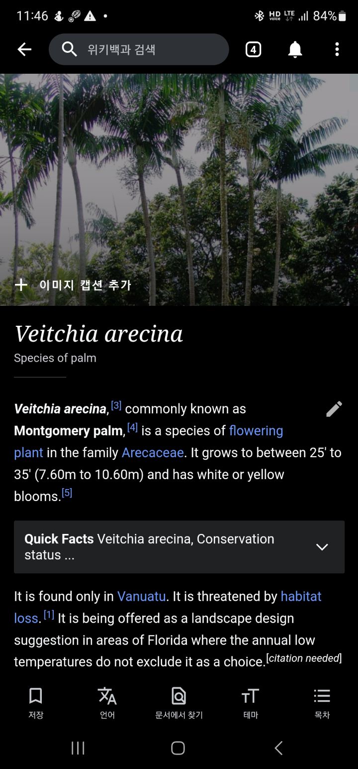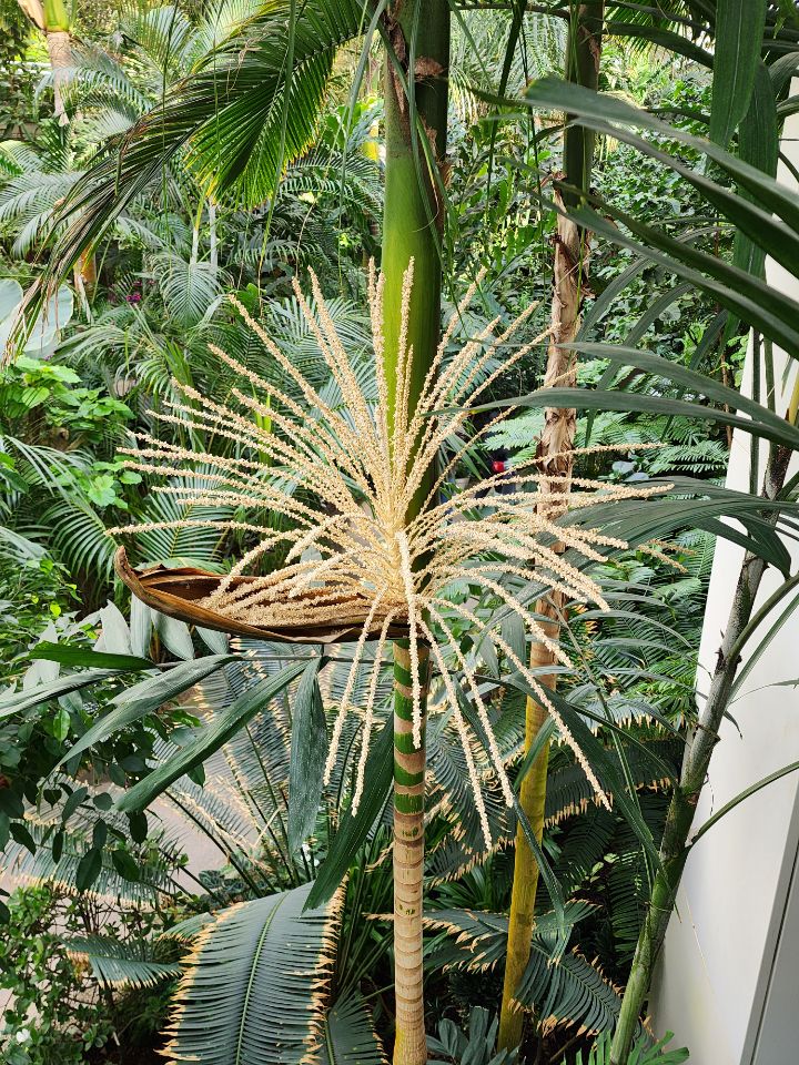 Veitchia arecina, commonly known as Montgomery palm, is a species of flowering plant in the family Arecaceae. It grows to between 25' to 35' (7.60m to 10.60m) and has white or yellow blooms.