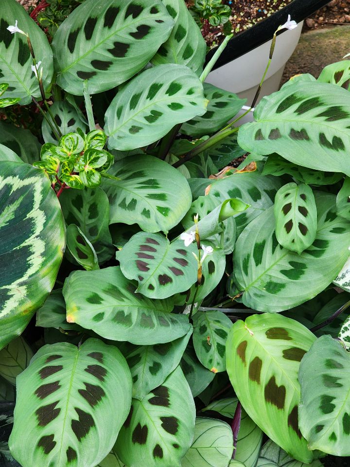 Maranta leuconeura, also known as prayer plant, is a species of flowering plant in the family Marantaceae, native to the Brazilian tropical forests. It is a variable, rhizomatous perennial, growing to 30 cm (12 in) tall and broad, with crowded clumps of evergreen, strikingly-marked oval leaves, each up to 12 cm (5 in) long.