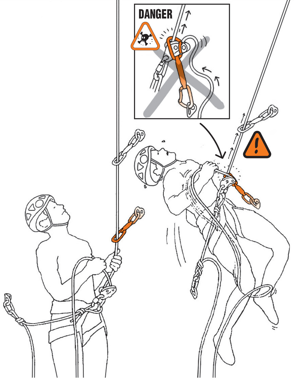 주의 : 사망할 위험이 있으므로 정확한 로프로 하강해야 합니다.