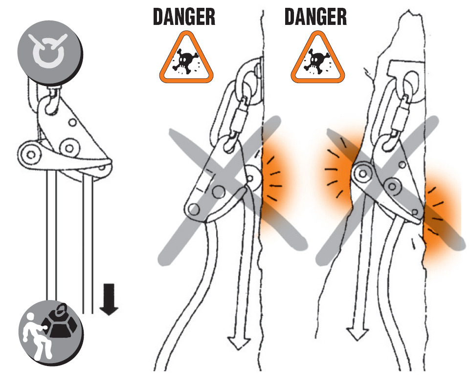 이 장비는 도르래 등강기로 대처할 수 있으나, 심한 마찰을 일으킵니다.