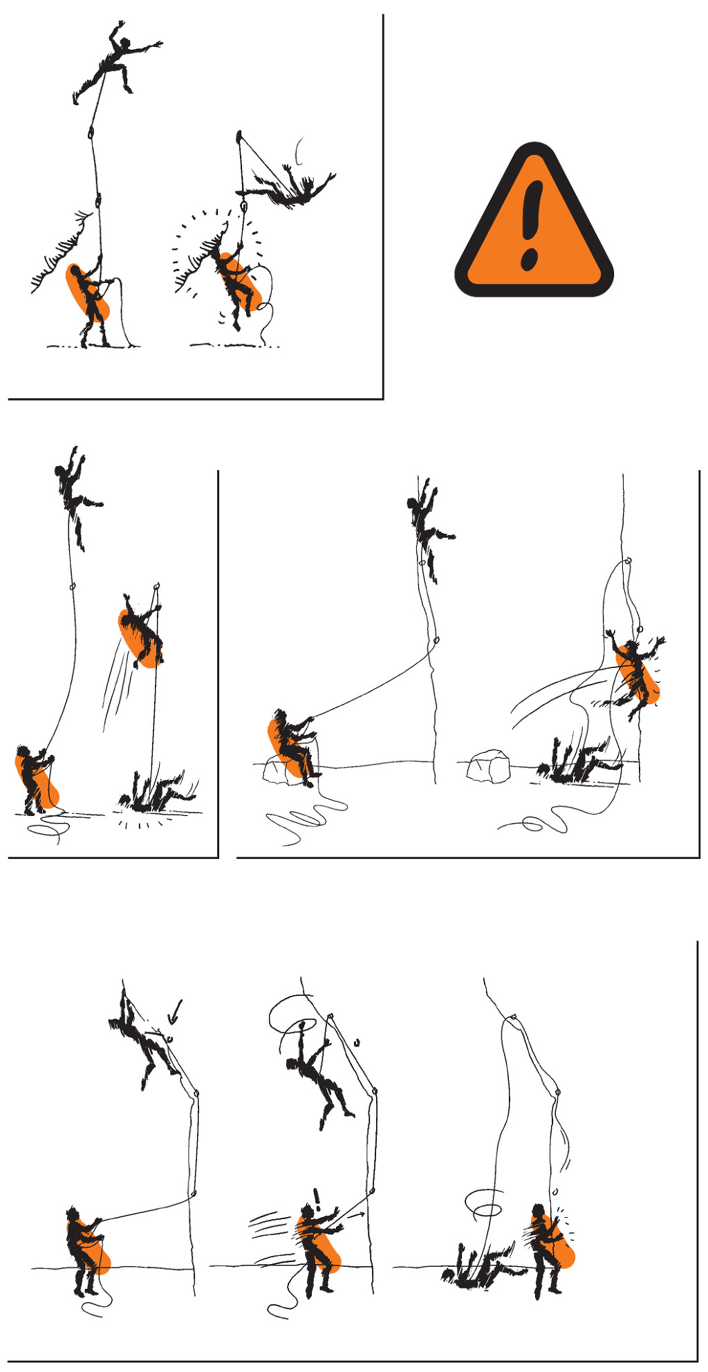 ○ 확보자는 항상 안전에 유념해야 합니다 : 등반자의 추락과 확보자의 안전을 위해 항상 자기 확보를 해야 합니다.