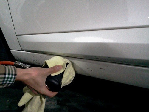 사이드 스탭에 타르 등이 완고히 고착되어 있는 모습입니다.