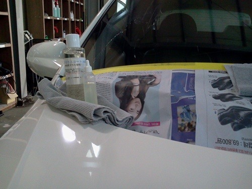 일본에서 새롭게 출시된 유리막 코팅제의 테스트 시공입니다.