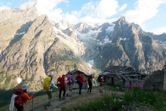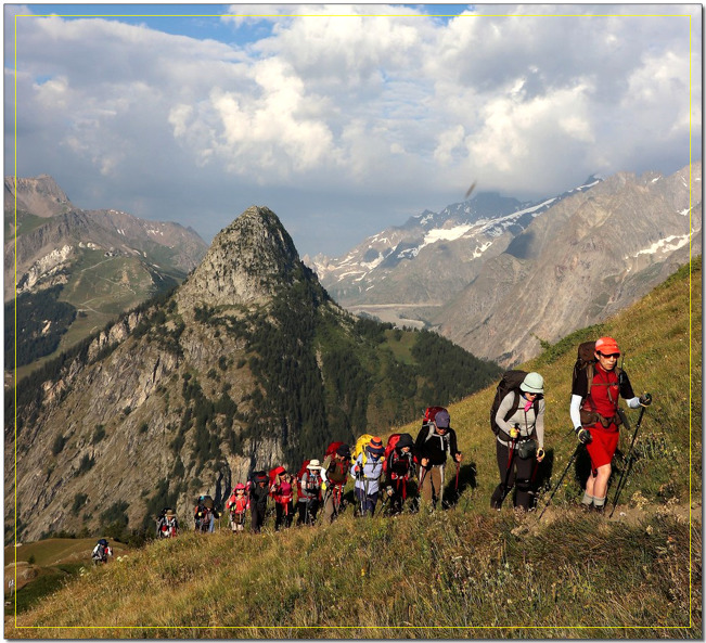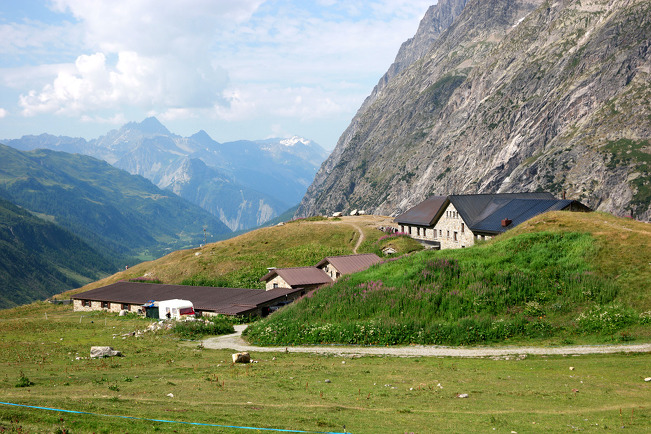 7월30일 (6일차) | 트레킹 | ◎08시 조식후 쿠르마예르의 베르토네산장 출발 ★베르토네산장(1989m)~몽드라삭스능선~트롱쉬고개~샤핀고개~보나티산장(5박)(2025m) 약12km 6시간 빨래 이벤트 ★짧은 코스이므로 변형코스로 몽드라삭스 능선산행과 샤핀고개/ 엔트레데욱스 고개 를 넘어 보나티산장에 여장을 풉니다./약12km 6시간 ▒몽블랑 최고 풍광 중의 하나로 몽블랑 남서벽과 그랑조라스의 절경을 보게됩니다. | 보나티산장 4~6인실 | |