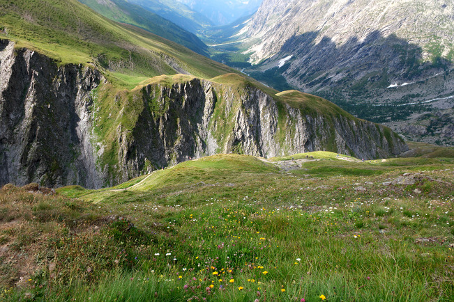7월31일 (7일차) | 전일트레킹 | ◎08시 보나티산장 출발 ★보나티~라바쉐~살레발페레~엘레나산장(2062m)~페레고개(2537m)국경~라퓔라목장(2071m)~레자르스~페레마을(1705m)~페네트르호텔(6빅)(누적102km/약17km 9시간 ▒페레고개를 넘어 스위스로 라폴리 마을 에델바이스 호텔1박 | 패레마을 페네트르 호텔 도미토리 | |