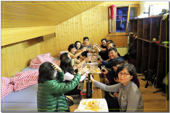 7월27일 (3일차) | 전일트레킹 | ◎06시기상 07시 조식 08시 랑보랑산장 출발 트레킹시작 ★르 퐁테산장 출발~낭보랑산장(1460m)~발므산장(1706m)~조베평원~본옴므고개~크로와 뒤 본옴므고개(2483m)~푸르고개~레 튜프(2023m)~글래시마을~모때산장(1870m)/약22km 9시간 ▒조벳호수는 트랙에서 벗어나 있고 옵션으로 고도300m up함(왕복4km) 해발2000m 이상의 호수입니다. | ★모때산장 다인실 | |