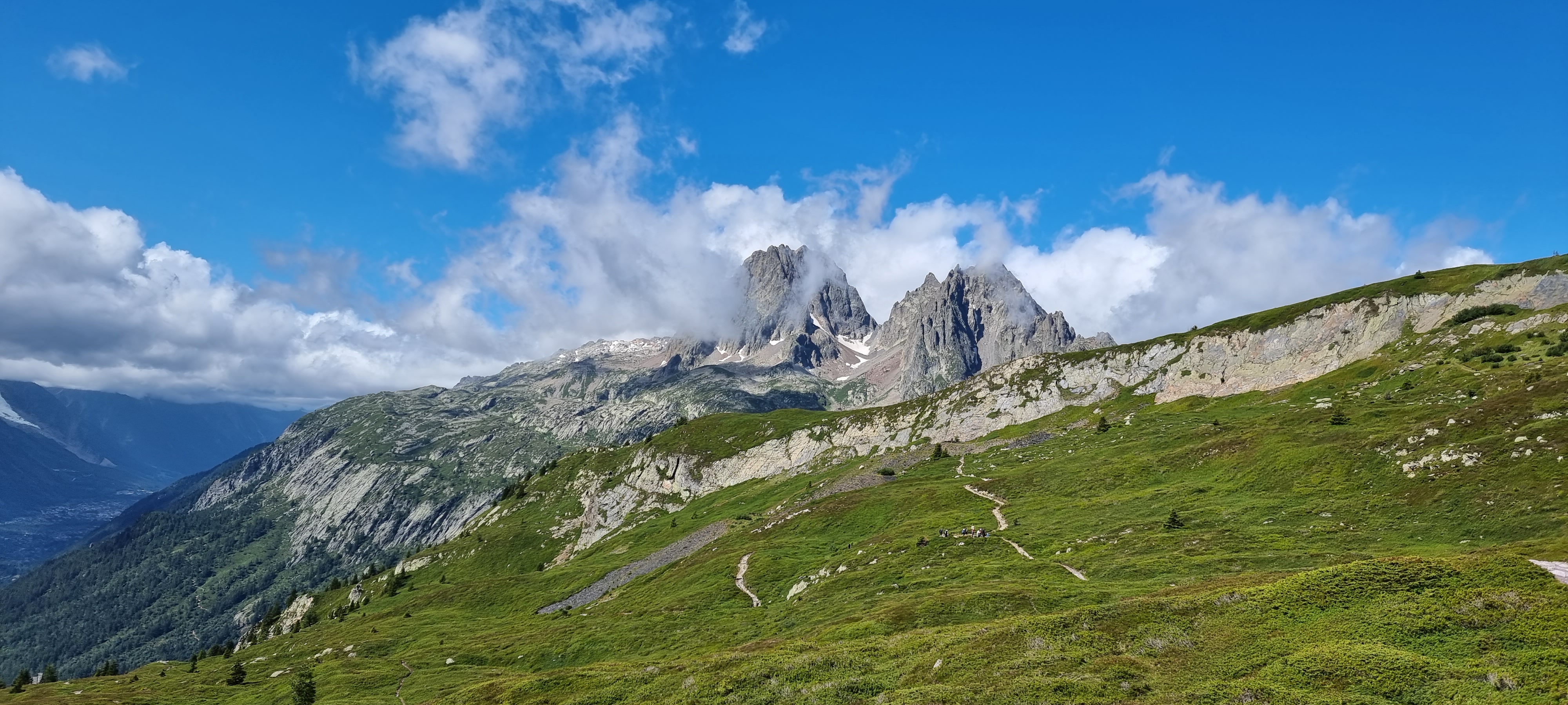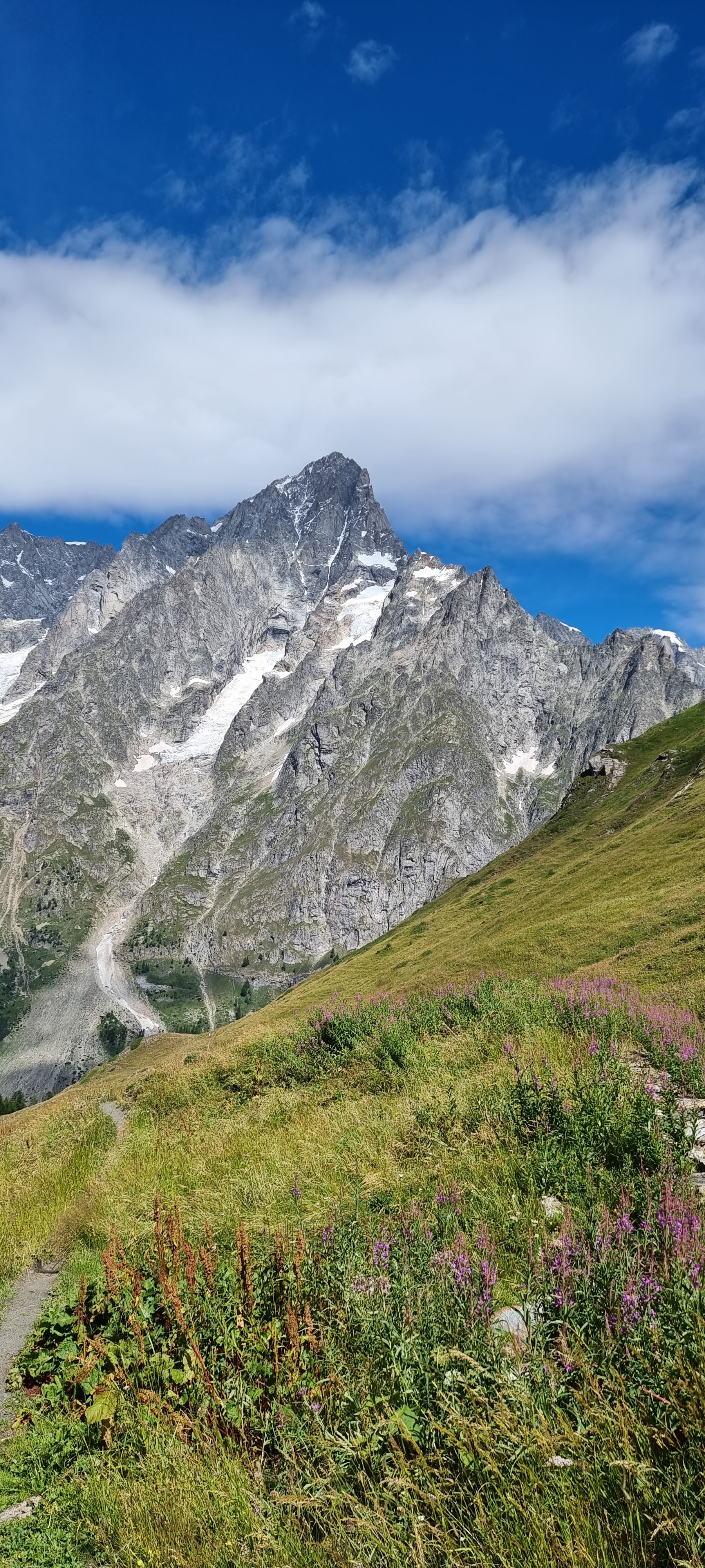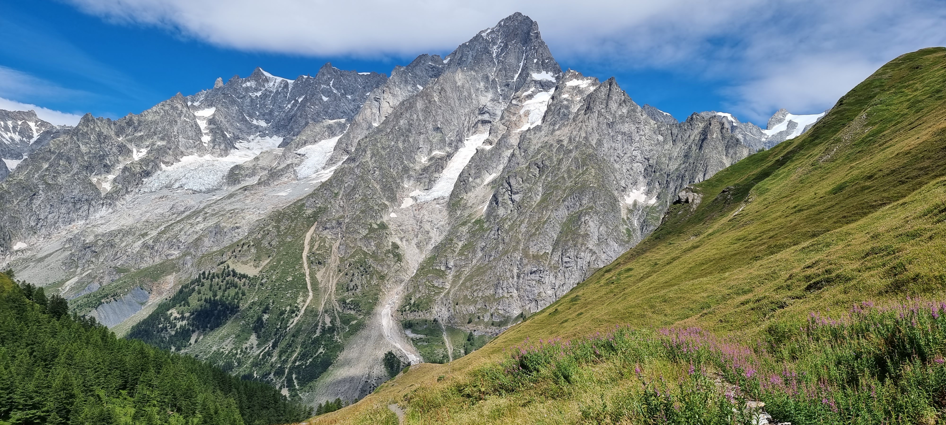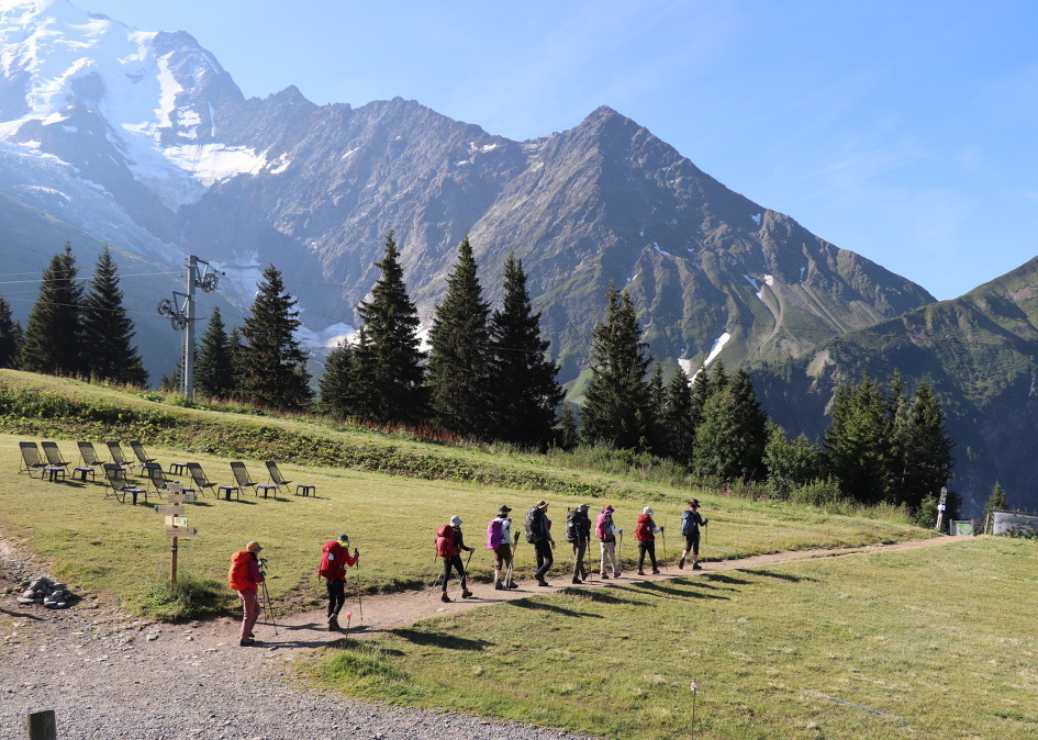 | 7월29일 화요일 (7일차) | 전일트레킹 | ◎08시 조식후 쿠르마예르의 베르토네산장 출발 ★베르토네산장(1989m)~몽드라삭스능선~트롱쉬고개~샤핀고개~보나티산장~엘레나산장~그랑페레고개~라펠라목장~레자르스~페레마을~페네트르호텔(7박)/약25km 9시간 ★변형코스로 몽데라삭스 능선산행과 샤핀고개/ 엔트레데욱스 고개 몽데라삭스능선은 알프스 소녀 하이디가 떠오르는 알프스의 대표적인 경관을 보여주며 끝없는 초원에 한없는 야생화는 대원님들의 가슴을 구름위로 밀어 올리기에 부족함이 없습니다. ▒몽블랑 최고 풍광 중의 하나로 몽블랑 남서벽과 그랑조라스의 절경을 보게됩니다. | 스위스페네트르 호텔 |