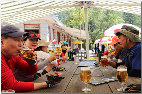 | 8월2일 토요일 (11일차) | 전일트레킹 | ◎07시30분 조식후 브레방 트레킹 시작플라제르산장~(프랑프라즈)에서 브레방고개로 트레킹시작~브레방고개~브레방전망대(2526m)~벨라샤산장(2152m)~메를레주차장(1370m)~쿠포~레우슈/약18km 8시간 오후4시 레우슈에서 트레킹종료 레우슈 호텔 Check in 트레킹 첫날 숙소에 복귀하여 하루 여유있게 11일간의 대장정을 마무리하면서 케리어에서 잠자던 소주를 캬~아◈누적180km ▒TMB 마지막 날 몽블랑 최고의 브레방전망대와 몽블랑 정상을 조망하면서 일주 트레킹을 마무리한다. | 레우슈 미쉘파고산장 |