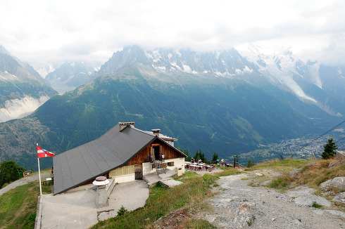 | 7월26일 토요일 (4일차) | 벨뷔케이블카 전일트레킹 | ◎07시 산장식으로 조식후 케리어 보관 check out 08시 트레킹 출발 변형코스트레킹을위해벨뷰언덕까지 케이블카탑승 벨뷔언덕까지 이동 ★벨뷔언덕~트리코고개~미아지산장(1550m)~트뤽산장(1729m)~레콘타민마을(1167m)~마을끝~르 퐁테 산장~낭보랑산장~발메산장4박 약22km 약9시간 ▒몽블랑 트레킹 첫날로 적응을 위해 케이블카로 고도800m를 올립니다. | ★발메산장 다인실 |