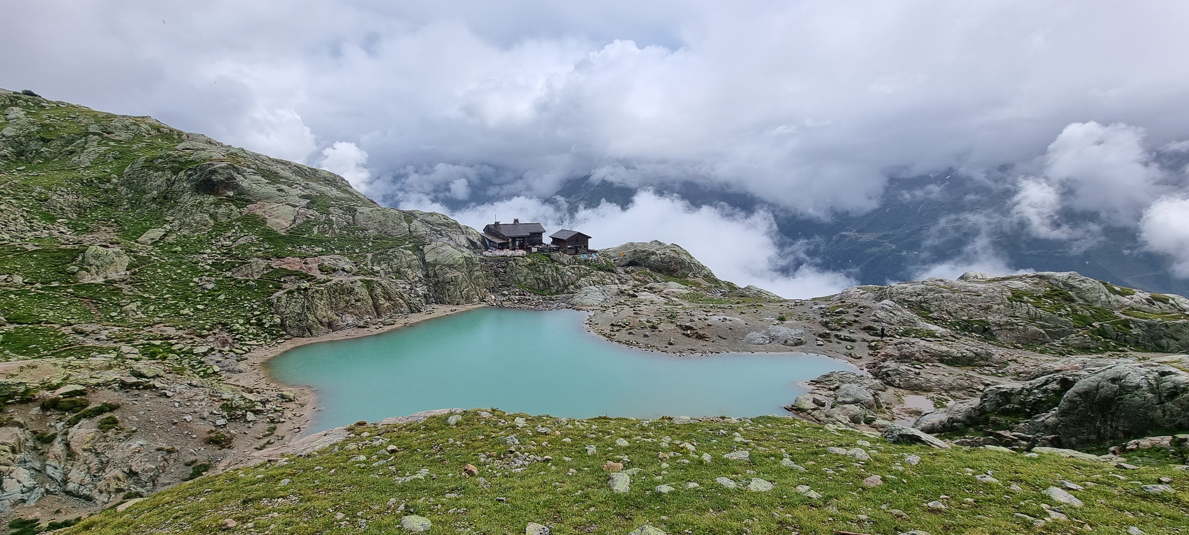 | 8월1일 금요일 (10일차) | 전일트레킹 | ◎08시 조식후 트레킹시작 ★국경인 발므고개쪽으로 잠시오르다 정규코스인 포제트 능선길과 골짜기 마을길이 있습니다. ★샤라미용(1920m)~발므고개~포제트능선~르트르~몽록마을(1360m)~트레르샹(1417m)~테트오방돌탑(2132m)~시저리호수군~락블랑~플라제르산장(10박)/약17km 7시간 ▒몽블랑 대표적인 락블랑 호수는 정규코스에서 벗어나 있지만 체력의 여력이 남아 있다면 반드시 조우해야하는 옵션코스입니다. | 플라제르 산장 도미토리 |