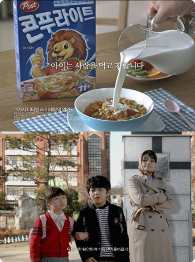 보통 콘푸라이트는 아침에 먹는 제조식품으로 광고를 산뜻하거나 즐겁게 하곤 했는데 이 광고는 어린아이들의 이별을 꽤나 재미있게 표현했다고 생각한다. 최근 드라마 씨크릿 가든 이라는 드라마가 인기가 많았고 그 드라마의 O. S. T가 어린여자아이가 우는 장면에서 흘러나오는 장면은 슬프기보다는 웃기게 패러디한 모습으로 다가와 신선했다고 생각한다.