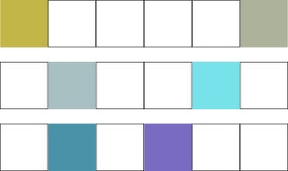 3) B/dl ~ P/dl 한 칸씩 돌아가는 그라데이션 -동일 톤임에도 불구하고 컬러 자체가 갖고 있는 명도가 P가 낮으므로 좌에서 우측을 갈수록 명도가 미묘하게 낮아지는 그라데이션입니다. 첫째칸 BG / 셋째칸 bV / 다섯째칸 rP / 여섯째칸 R 인데 여기서 주의 할 사항은 rP가 자체적으로 형광빛이 있으므로 채도 조절을 잘하여 지정된 P만큼 채도가 낮으면서 명도가 낮도록 신중히 조색합니다. 또한 R은 rP와 자칫 붙어보일수 있으므로, 미묘하게 적절히 버밀리언을 추가하여 컬러가 각각 한개씩 돌아가는 모습이 보이도록 조색합니다.
