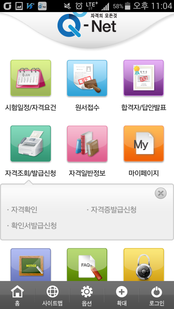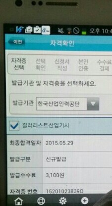 큐넷 어플다운로드 - 자격조회 - 자격확인