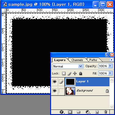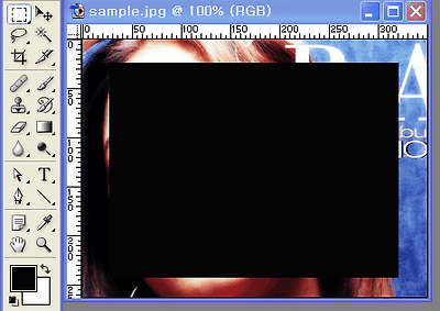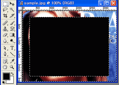 4. 선택영역이 지정된 상태에서 Alt + Del 을 눌러 검은색으로 선택해줬던 전경색을 채워줍니다.