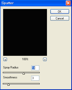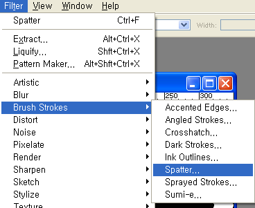 Filter -> Brush Strokes -> Spatter 을 선택해 주세요