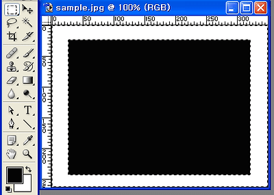 3. 왼쪽의 툴박스에서 사각툴을 선택한뒤 예제와 같이 전경색은 검은색 배경색은 흰색으로