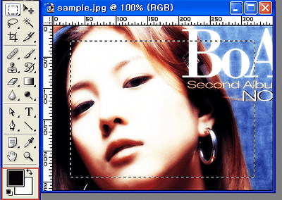 선택합니다. 그리고 사각툴로 이미지의 중앙부분을 대력 아래와 비슷한 영역으로